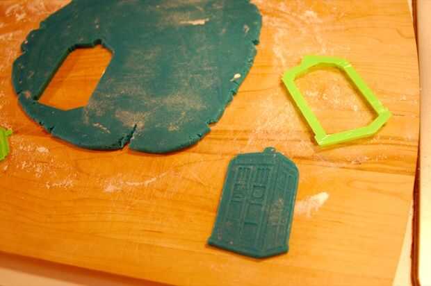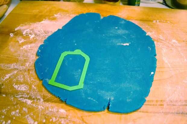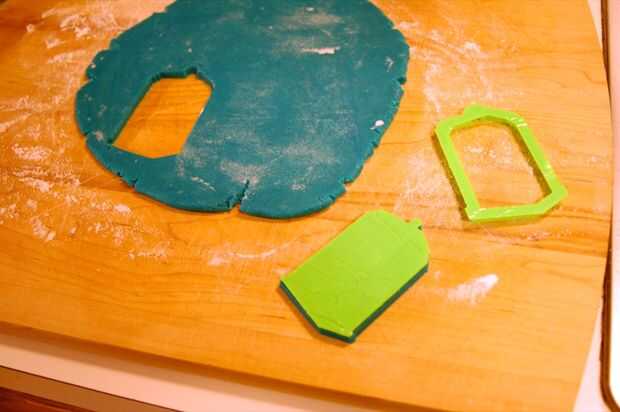 Utilizar el cortador de galletas para cortar las galletas, luego presione ligeramente la marca de galletas en cada galleta.