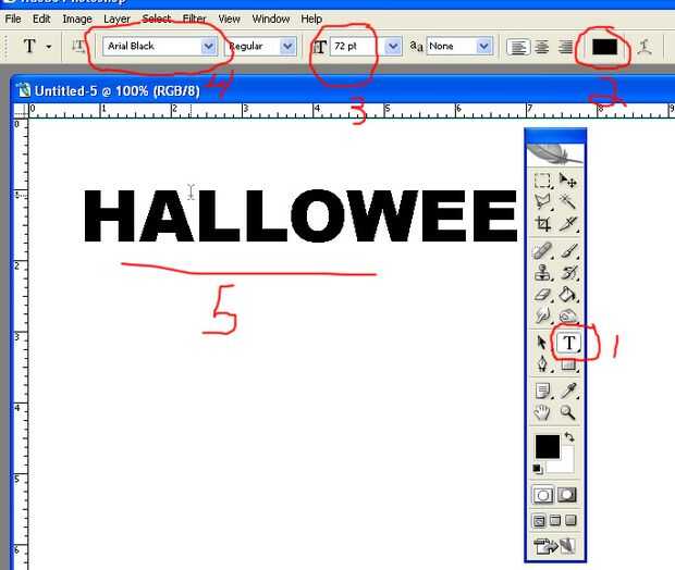 e. Comience escribiendo aquí a la izquierda de la ventana (imagen 5 rojo) eligió a "Halloween" pero puede dibujar o pegarlo que quieras aquí.