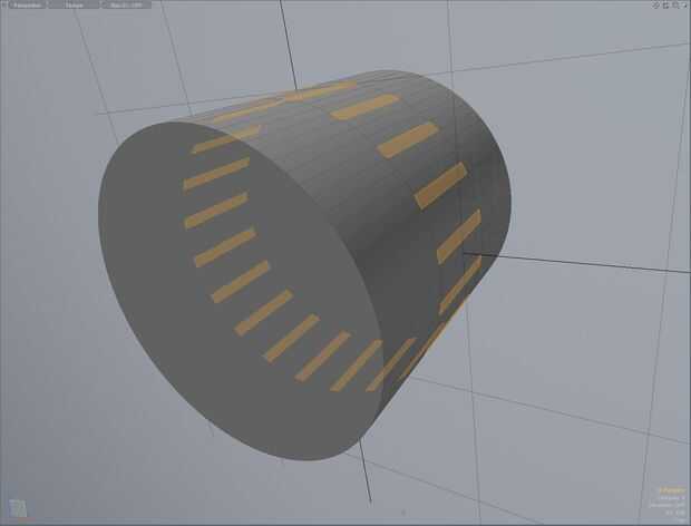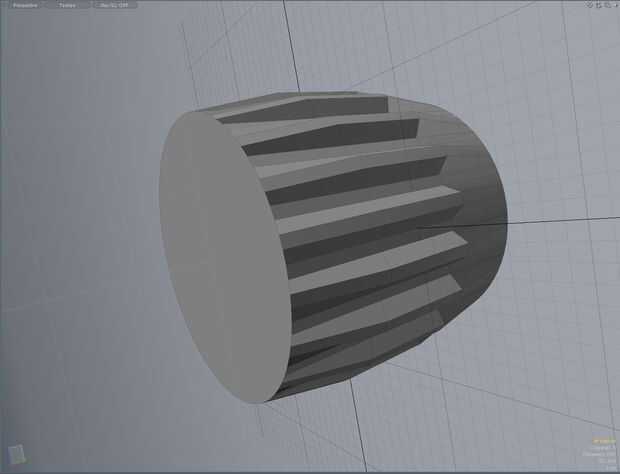 A partir de los datos críticos en primer lugar, en este caso la sección acanalada, hice un cilindro de la dimensión de la ranura interior. Un punto clave aquí es que el cilindro tenía 80 lados. Esta permitido mi para seleccionar cada parte 4 y la escala desde el punto del centro a la dimensión exterior de la tira. Esta forma de la spline básica.