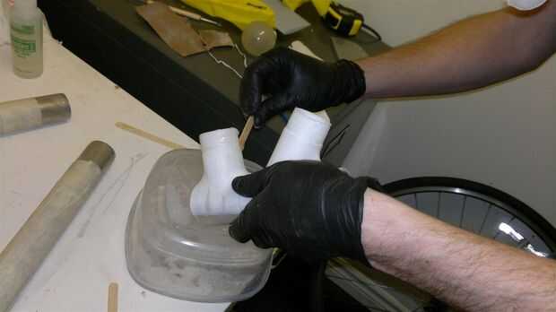 Observar las reglas de preparación superficiales – Limpie solvente, arena áspera, luego limpie solvente otra vez. Deje el flash solvente durante un minuto y luego mezclar un lote de resina de 5 minutos. Lo 5 minutos no es casi tan fuerte como más tiempo de curado de resinas epoxi laminado, pero ya que tu tomas plástico impresos 3D no son realmente estructurales, es más que suficiente virar en el lugar. El proceso de pegado es mejor si manchan el epoxi en el interior del tubo en lugar de la parte exterior de la toma, puesto que no exprima hacia fuera.