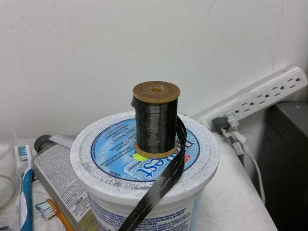 Después de que había fijado el epoxi, me a lijar el exceso y crear una junta arremetió con un remolque de fibra de carbono (fina unidireccional de la cinta que viene en un carrete) para fuerza extra y seguro. Primero envuelve el empalme en fibra de vidrio y luego envuelto varias Figura-8 con la fibra de carbono hasta que era uniforme y cubre todos los bordes del jefe. Entonces lo envolvió en cinta eléctrica para comprimirlo, como antes.