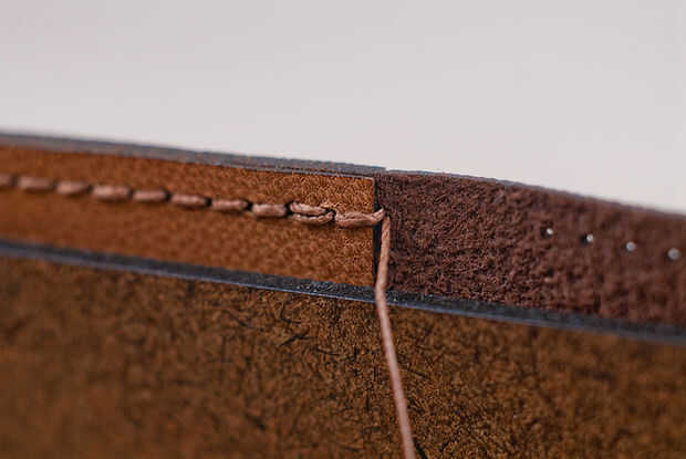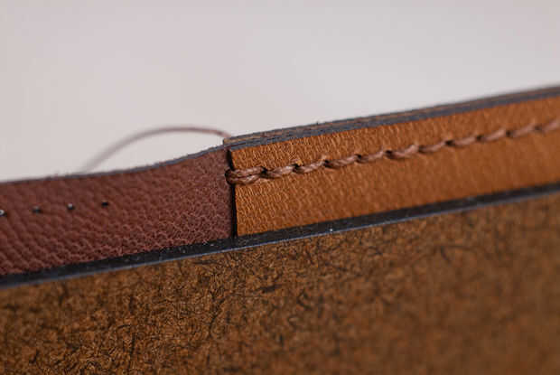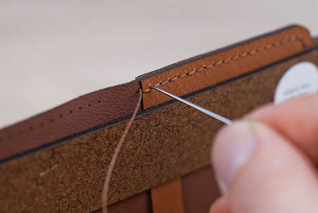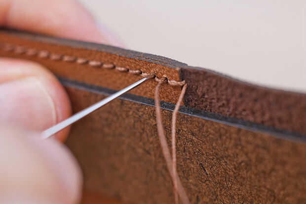 Hacia el otro lado de la costura pony y ahora pasar el hilo de la misma a través del agujero siguiente yendo hacia atrás en la misma forma que el primero. Usted haya terminado con este hilo.