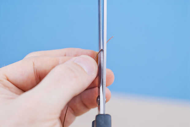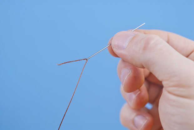 Si el extremo del hilo se convierte en deshilachado, corta otra vez en un ángulo, quitando como poco posible. Enhebrar las agujas puede tomar algunos intentos.