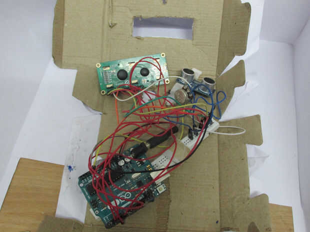 por favor vea el video para la mejor demostración.vamos a usar dos sensores de ultrasonidos, una pista de movimiento horizontal y el otro a la vertical. la clave está en colocar los sensores y mediante una herramienta (una caja de zapatos en nuestro