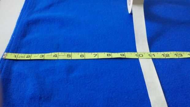 Doble a la tela por la mitad para que sea 5 1/2 pulgadas de ancho y 60 pulgadas de largo.
