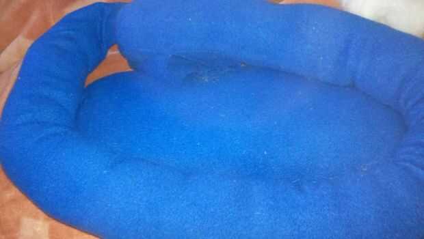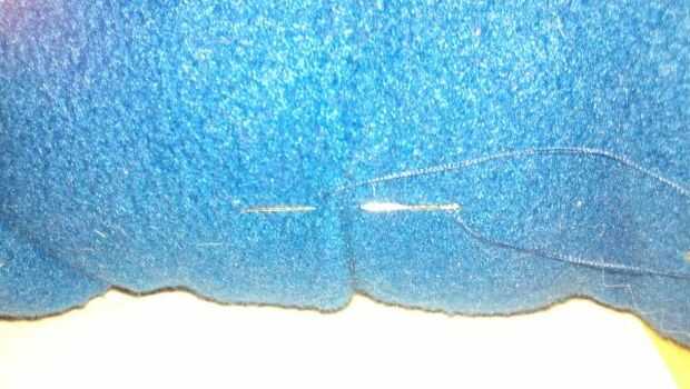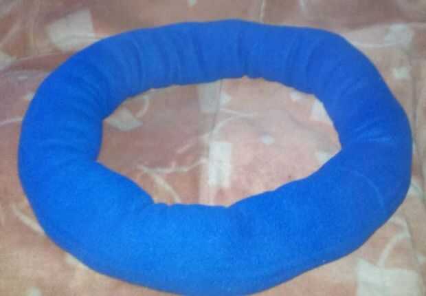 Doble a la tela extra en la apertura del tubo interior y luego rellene el extremo cercano del tubo en el extremo abierto para que tenga un círculo continuo.