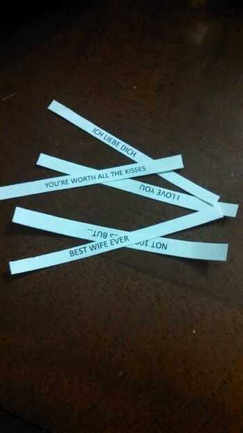 Luego cortarlas en tiras. Puede utilizar las tiras originales de los besos como una guía.