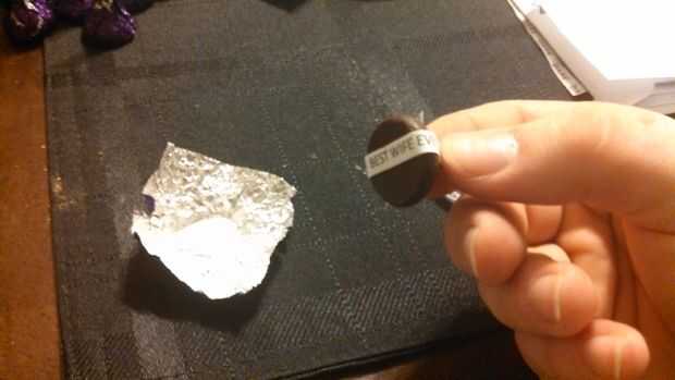 Envolver el chocolate con la cara de tinta personalizados frases hacia fuera.