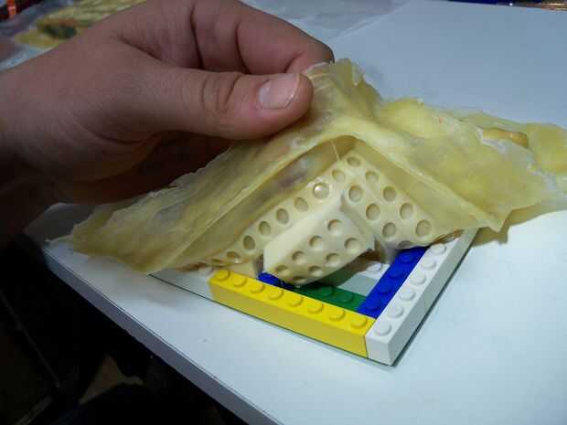 Una vez todo seco para su satisfacción, retire cuidadosamente el papel encerado. Afloje el molde todo el camino alrededor de los bordes, y lentamente tire de ella fuera el ladrillo original. Si todo ha ido bien, debería tener un negativo perfecto de los ladrillos del edificio!