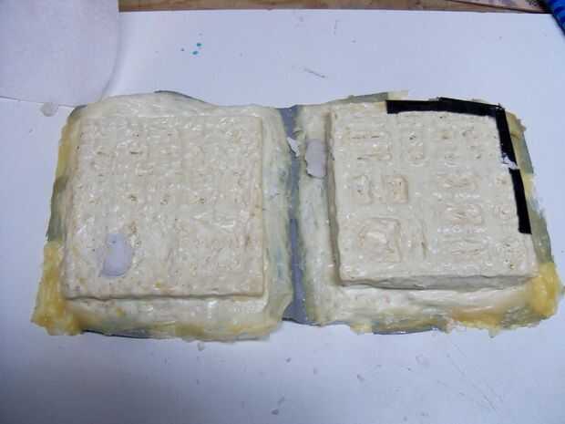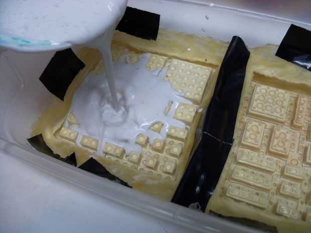Dejar curar durante la noche para asegurarse de que está completamente hecho, luego retírelo del envase. Lentamente retire el látex como antes. Mis moldes de yeso fueron un poco desiguales en puntos, ya que el contenedor era un poco pequeña y no es perfectamente plano en la parte inferior. Si tuviera que hacerlo habría construido una caja de cartón de exactamente el tamaño correcto para hacerlo.