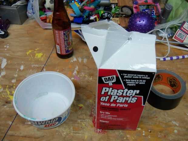 Yeso de París se mezcla en un yeso de 2:1 proporción de agua. El DAP que compré es de curado rápido, así que sólo tienes unos minutos para trabajar con él una vez que usted agregue agua. Afortunadamente, usted va solo ser verterlo en el molde de látex. Revolver todo hasta que es uniforme y vierta, asegurándose de cubrir todo el molde por lo menos 1/2 una pulgada profunda.