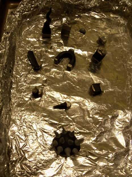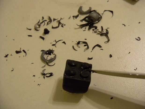 Por último, a menos que tuvo mejor suerte con la fundición de metales que hice, usted necesitará agarra tu cuchillo y recortar por los bordes de sus ladrillos. Mis sellos son ligeramente irregulares, por lo que había algunos trozos de arcilla que tuvo que ser recortada en cada lote.