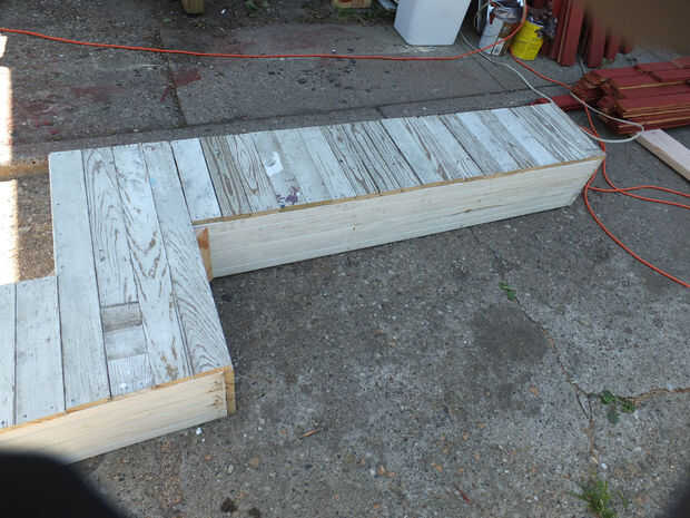 La parte inferior está construida del mismo modo que los lados midiendo, corte y montaje de tableros según la anchura de su caja como se muestra. Esta vez usé clavos y utiliza dos clavos en cada lado de cada tabla. Esto hará que se queda si alguna vez decides mover el cuadro. Sin embargo, en mi caso que he montado la caja al lado de mi casa por lo que es probablemente la única vez que se consigue moverla es cuando estoy trabajando en el porche detrás de él.