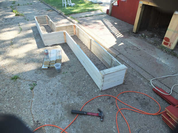 Mis tablas tienen un hueco por el centro de un lado de la Junta que enfrenté hacia el interior de la caja. Esto deja pequeños orificios a lo largo de los lados de la caja y deje que el agua drene hacia fuera. Si las tablas son diferentes a la mía puede perforar los agujeros en la parte inferior para permitir el desagüe.