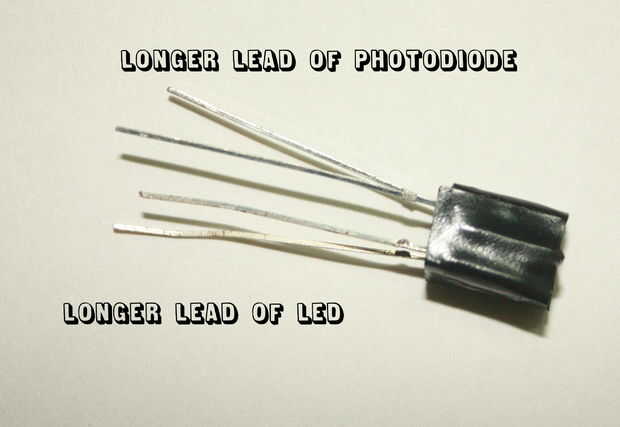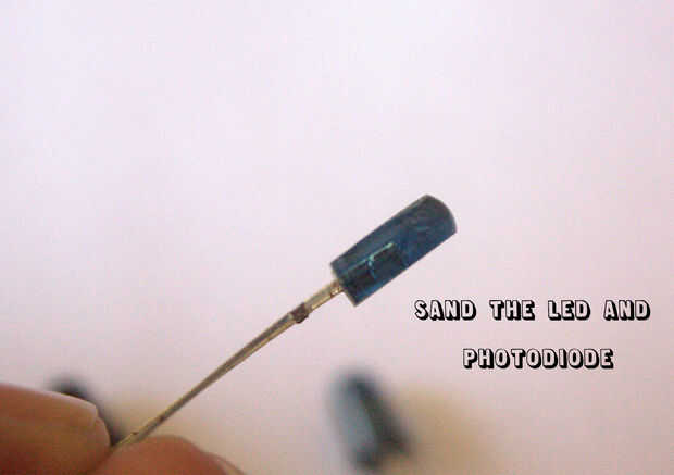 1. comienza por lijar el LED y el fotodiodo para que sea plano (no lije demasiado o destruiré).
