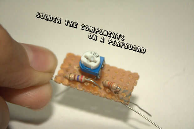 Tome un pedazo pequeño de Perfboard y coloque los componentes según los esquemas.