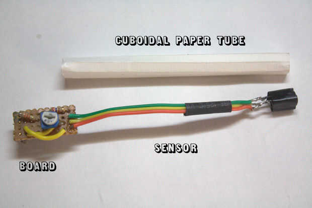 hacer un tubo de papel cúbicas cuya longitud es igual a los cables del sensor.
