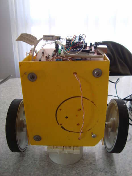 el dispositivo es un prototipo áspero de lo que eventualmente se convertirá en un robot de balance del uno mismo, esta es la segunda parte de la cosa del agujero (leer acelerómetro y controlar un motor a balance del uno mismo). La primera parte con sólo el giróscopo puede encontrarse aquí.