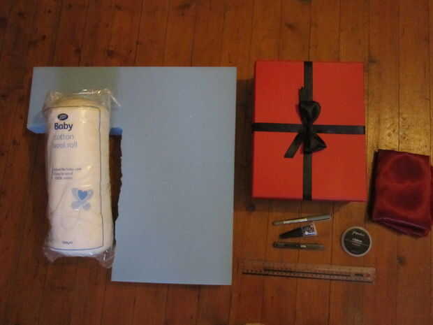 en este instructable, hice un estuche acolchado para mi rifle de airsoft de se encuentren alrededor de la casa...Paso 1: reunir los bienes que utiliza una caja vacía para una unidad de iluminación plegable y amortiguación... utilicé las herramientas