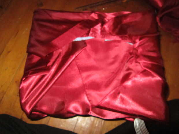 Antes de que pegue el satén alrededor de la parte posterior de la espuma, tu regalo firmemente en su pequeño hueco. Esto le impide pegar a la tela demasiado tensa.