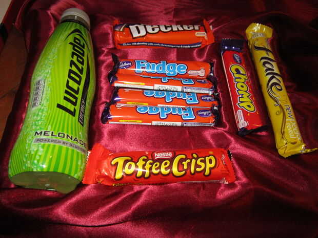 Opcional: Si va a transportar su regalo, puede que desee anclar hacia abajo con el hilo. Rosca una aguja y me corría por todo el espesor de la espuma, haciendo que 2 lazos a través de cada chocolate bar (cuadro 3). Entonces grabó el hilo hacia abajo en la parte posterior.