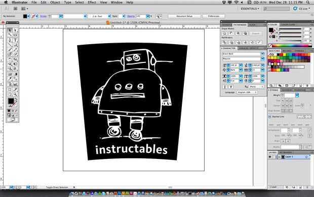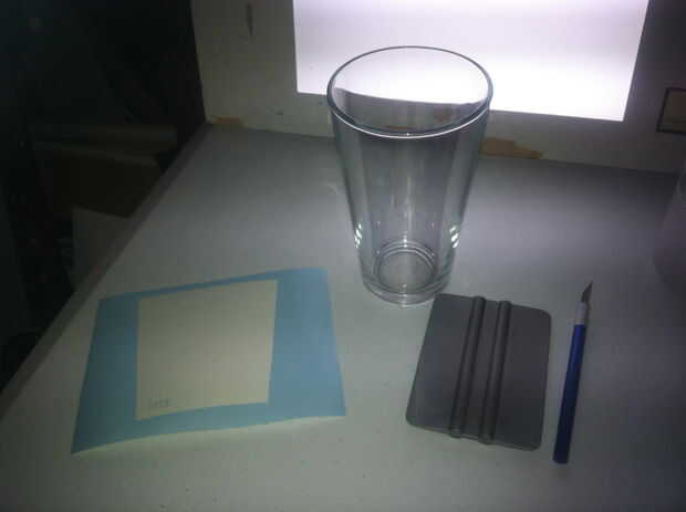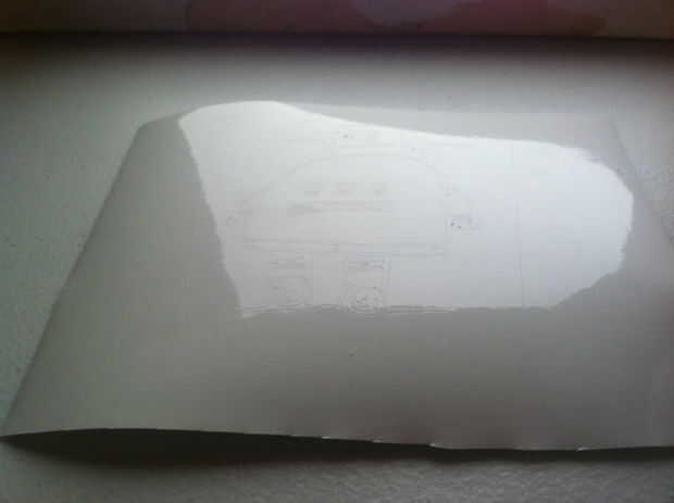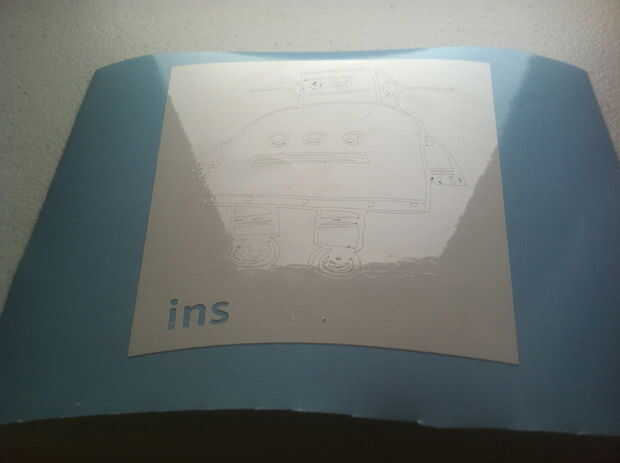 Mi diseño en el Robot y en Instructables. Armé esto en Illustrator. Apliqué una leve deformación en el diseño (unos + 6% curva para vidrio especial) para permitir que se ajustan más fácilmente a la forma del cristal.