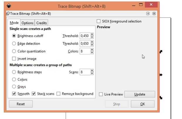 Si no logra crear una forma vectorizada decente, puede probar de seguimiento diferentes métodos y valores de los parámetros, o consultar el tutorial mencionado, hay demasiadas opciones al trazo para explicarlos en este instructable.