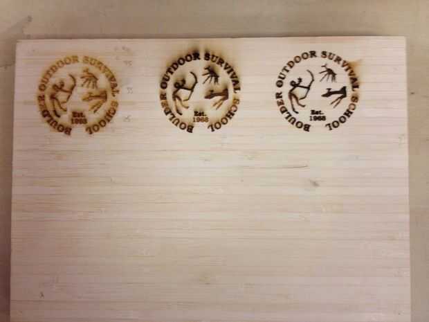 Verificar los ajustes de su potencia y velocidad en el bambú de la chatarra. Estaba usando un cortador del Laser de Epilog Helix 45 vatios y se establecieron en un ajuste de potencia de 90 y la velocidad de 25, con un DPI de 1200. La configuración variará dependiendo de la potencia de su corte, y resulta que 1200 es probablemente overkill como mayoría de la gente no puede discernir la diferencia entre 600 y 1200 DPI.