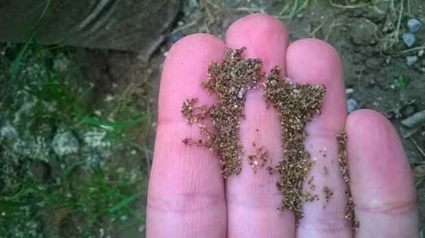 Naturalmente el concreto va a cubrir partes de los azulejos de la piedra en el proceso, para que cuando termines tienes que usar un cepillo de alambre áspero para limpiarlas otra vez y revelar las piedras bajo el hormigón.