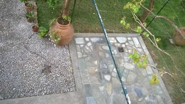 Usted debe limpiarlos mientras el concreto todavía está fresco. para evitar el trabajo extra. Después de un par de días, el concreto es tan fuerte como una roca. Lavé el piso con jabón para quitar todo el cemento de las baldosas de piedra y hacerlas brillar. Tuve que hacerlo más de una vez, porque naturalmente el cemento ha cambiado su color.
