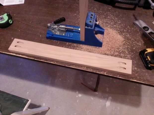 Montaje de los lados de la base es bastante sencillo. Las bandas de la tapa 1 x 4 sentarse a ras a la parte superior de las piernas. Sientan las bandas inferior 1 x 3 1.5" de la parte inferior de las piernas. Agujeros de bolsillo deben perforarse según las instrucciones de la plantilla y luego las bandas laterales debe atornillarse a las piernas. He encontrado que el proceso de montaje se hizo mucho más fácil colocando las piezas en el piso (superficie plana) antes de atornillar juntos.