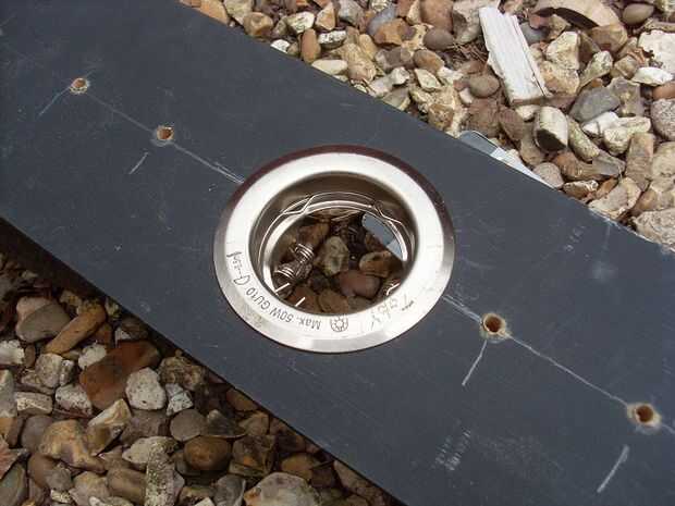 decidí entonces cuantos LED podría (se ven bien) para montar en la luminaria. Me decidí por 40 en una sola tira hacia abajo el centro de la luminaria. Uno cada 6 cm. marcar éstos hacia fuera luego perforados agujeros de 5mm para el LED. El LED que tengo es una cadena de 120 luces de Navidad, que me dejaría 80 izquierda sobre! Pero estas en buen uso más tarde...