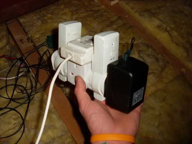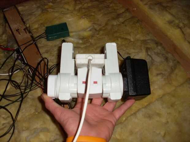Una vez que había montado la luminaria en el techo, luego alimenté los 2 cables para las cadenas LED para arriba en el desván sobre el techo. Tengo suerte en el hecho de que hay un enchufe en el desván, así le enchufamos una extensión plomo en y funcionó mi 2 sockets remotos de como en la imagen.