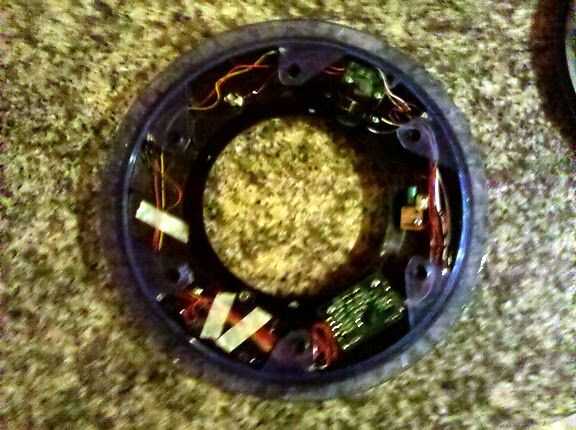 Saque todos los componentes electrónicos del interior del disco. Hay alguna cinta adhesiva que tendrá que sacar para sacar algunas partes.