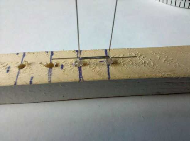 Cortar 8 tramos de alambre del tamaño de 12 marcas en el disco. Si tienes varios colores de alambre - trate de suplente. Una pequeña porción de la tira en cada extremo. Soldar cada uno al final de un ánodo de su segmento. Usé alambre de embalaje, por lo que me pareció útil primero Envuelva el cable alrededor de la cabeza y luego de la soldadura. Véase el cuadro 5. Prueba de su segmento como lo hicimos con el aro interior. Acortar la longitud de cable extra - usted no necesita más allá de este punto.