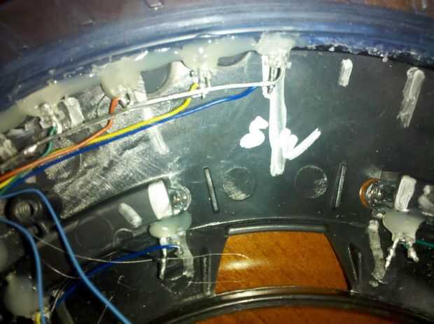 Por ahora, el disco probablemente a partir para parecerse a una masa de alambres. Con cuidado colocar estos cables por debajo de su LED donde posible hará que el disco parece un poco más limpia. A menudo he encontrado útil quitar las baterias (si usted tenia en su lugar) para meter los cables. Una vez terminado y probado todo, es probablemente una buena idea de volver y agregar unos toques de pegamento caliente para mantener las cosas en su lugar.
