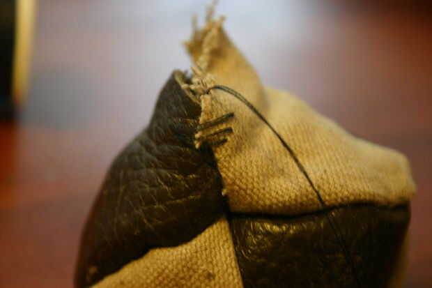Finalmente, enhebrar el hilo extra a través de la aguja y meter en la costura y vuelve a salir la mitad de uno de los paneles. Tensar el hilo extra (por lo que abre el panel) y luego la cortar el. Entonces, Naciones Unidas-fruncir el panel y los hilos de rosca serán enterrado dentro de la bolsa donde no sean visibles.