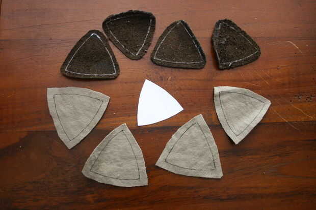 Luego corte los paneles hacia fuera dejando espacio suficiente para coserlas juntas. Dejó cerca de un cuarto de pulgada alrededor de las líneas. Dependiendo de su material y cuánto batallas, puede dejar más o menos de esto. Tengo podría probablemente una octava pulgada alrededor de la piel que a la izquierda, pero decidió ir para mayor uniformidad.