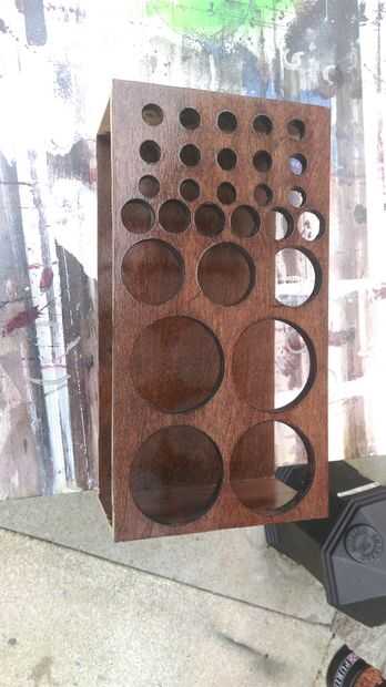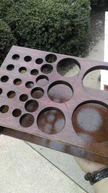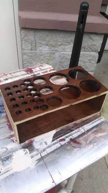 esta hecho para un amigo que le gusta salir al mundo para pintar; pero sería justo como útil para mantener organizados en el país.MaterialesRoble,.25 x 36 x 36"(3) roble, 5 x 2 x 36"(2) pasador cuadrado, 3/8 x 36 "colorante (opcional)acabad