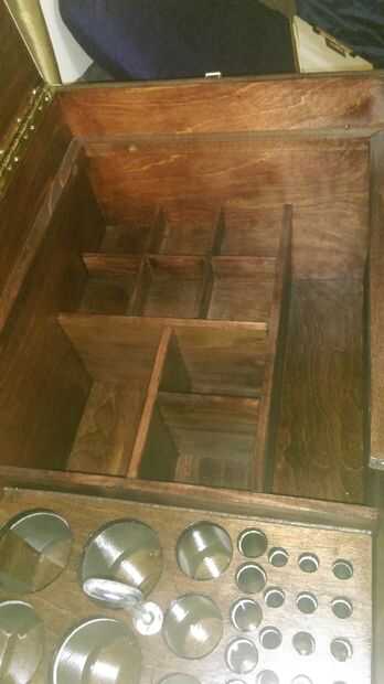 Yo quería tener una bandeja que él podría poner sus pinturas al óleo en el que también podía sacar y poner en su escritorio mientras trabaja. Esto sólo cabrían en la parte superior del pecho, así que enroscada algunos 1 x 1 en los laterales de las paredes cerca de 3 pulgadas para que la bandeja para. Hice la bandeja toda la longitud del pecho porque el sostenedor de cepillo debe ser removible y el 1 x 1 habría conseguido en el camino tratando de tirar de ella. Lo acabo de hacerlo suficientemente grande como para llegar hasta el borde de su soporte.