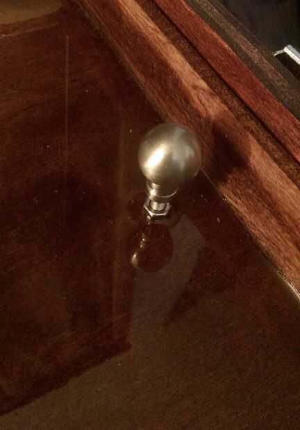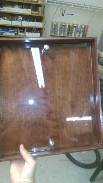 La bandeja está hecha de contrachapado de abedul 1/4 de pulgada y se acaba una bandeja básica con paredes de 2 1/2 pulgada. Os adjunto dos perillas pequeñas de ambos lados. Eran en realidad las piezas que se adhieren a la parte superior de la pantalla para mantenerla en su lugar. Acabo de atornillar un perno a través de la parte inferior de la misma y la perilla para atornillar luego derramé más de eso epoxy mano que tuve que hacer así resistente al agua. Y porque llevará a cabo sus pinturas ayudará a proteger la madera y ser lavables.