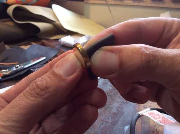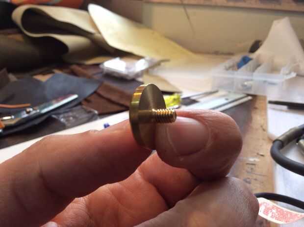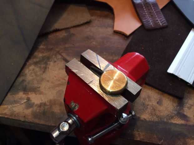 Las puntas por la plancha de la marca están roscadas por lo que puede intercambiarlos. Es necesario proteger las roscas en el punto de transferencia contra el daño. Me envuelve un pedazo de cuero alrededor de las roscas y luego les aseguró en la prensa.