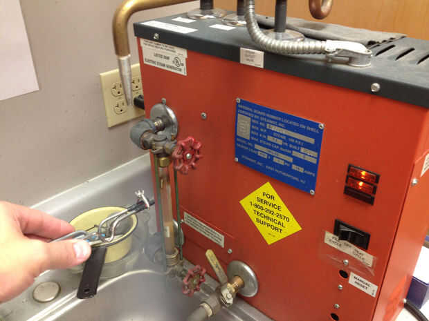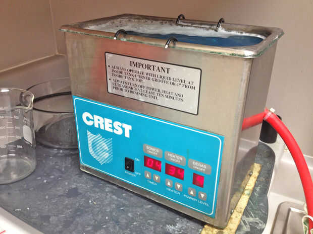 Utilizamos una cresta ultrasonida limpiador que es bastante similar a este modelo - http://www.ottofrei.com/Best-Built-3-4-Gallon-Pro-Ultrasonic-Kit.html