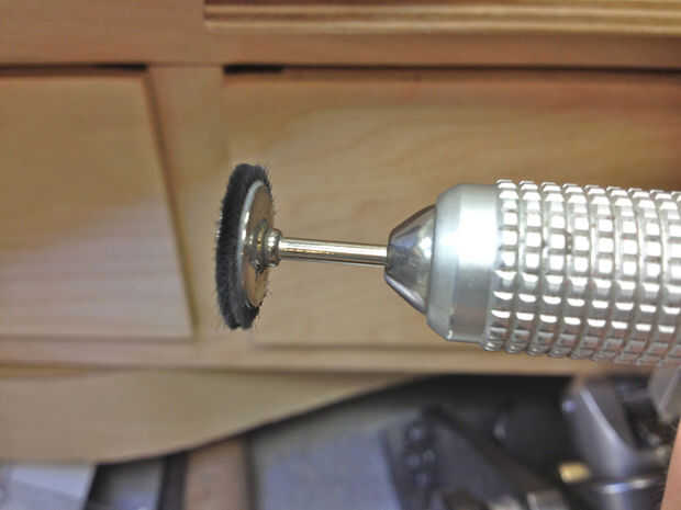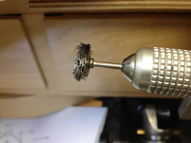 14.) de alambre ruedas, cepillos y compuesto para pulir. Discos de alambre los cepillos se utilizan con una herramienta rotatoria-la rueda del alambre se utiliza para quitar las rebabas y los cepillos se utilizan con un compuesto para pulir zonas para pulir. Para pulir platino utilizo tres grados de platino japonés compuesto para pulir.