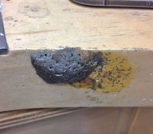 1.) necesita un sólido Banco de trabajo. Esto es donde la magia ocurre! La gran mayoría del trabajo se realiza en el Banco de joyeros. Cada joyero tiene sus propias preferencias en cuanto a cómo está configurado su banco y en los 15 años que he estado trabajando como un joyero que ciertamente he desarrollado mi propio sentido de lo que funciona y qué no. Eso no significa que no hay una manera diferente, mejor de hacer las cosas - esto es sólo mi preferencia personal. Banco de joyero debe tener una tapa robusta gruesa (a conseguir martillado en mucho) y debe tener una cacerola de metal forrada para recoger solicitudes de chatarra. Mantener la mayor parte de mis más grandes herramientas como martillos grandes, los archivos, mandril anillo, lijar palos y mi sierra en este pan así que rápidamente puedo agarrarlos.