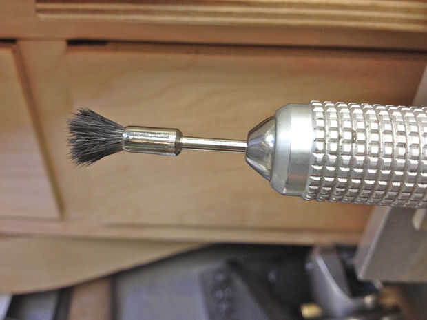 13.) polvo soplador y grabado herramienta. Usar el soplador de polvo para soplar desechos al utilizar fresas de corte. La herramienta de grabado es algo que procedente de una vieja fresa (I en forma/afilar el extremo con una vuelta de diamante pero ninguna piedra de afilar funcionará igual de bien): lo uso para grabar marcas en el interior de anillos.