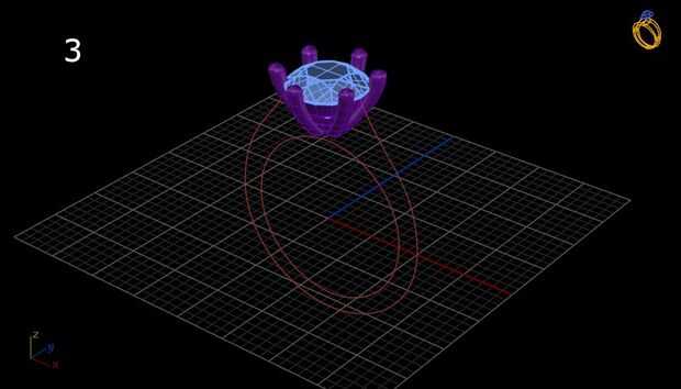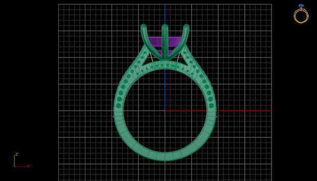 Te darás cuenta que este modelo es diferente que el último modelo que se muestra con todas las piedras en su lugar. El modelo que tiene todas las piedras es una versión que se utiliza para mostrar a un cliente aproximadamente su acabado del anillo como se verá. Puede ser difícil visualizar un anillo como se verá si sólo se muestran el modelo que es enviado para la fundición. El modelo que se envía para el casting sólo necesita tener hoyuelos que localizar donde las piedras se establecerá por el método de ajuste de piedra que se utilizarán en la construcción del anillo.