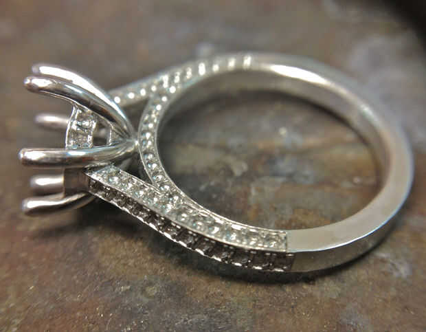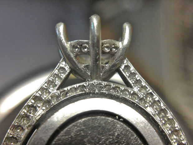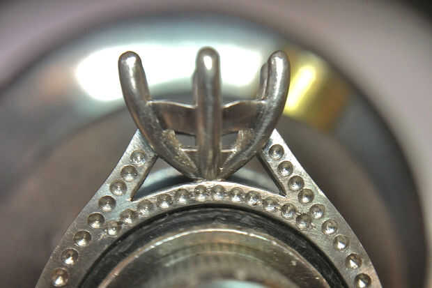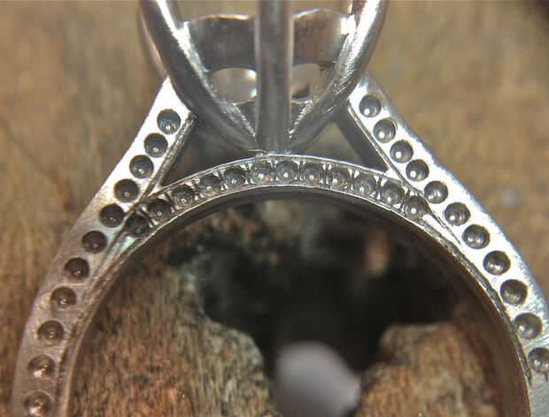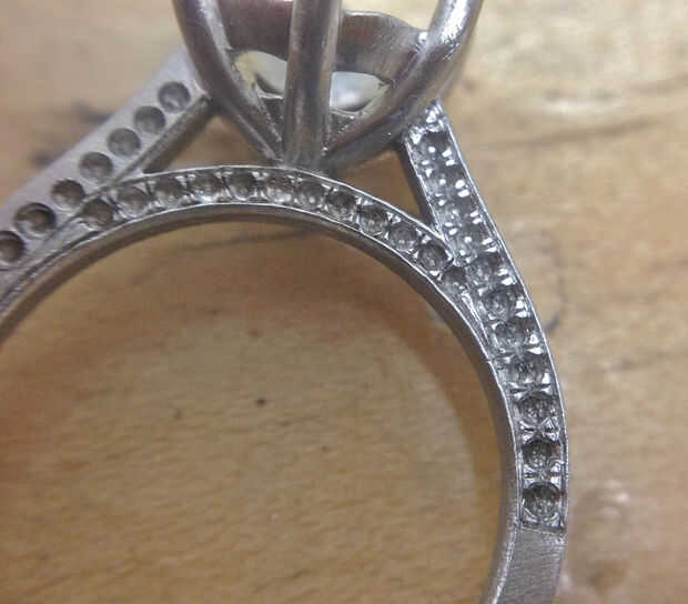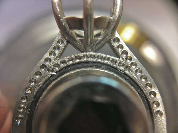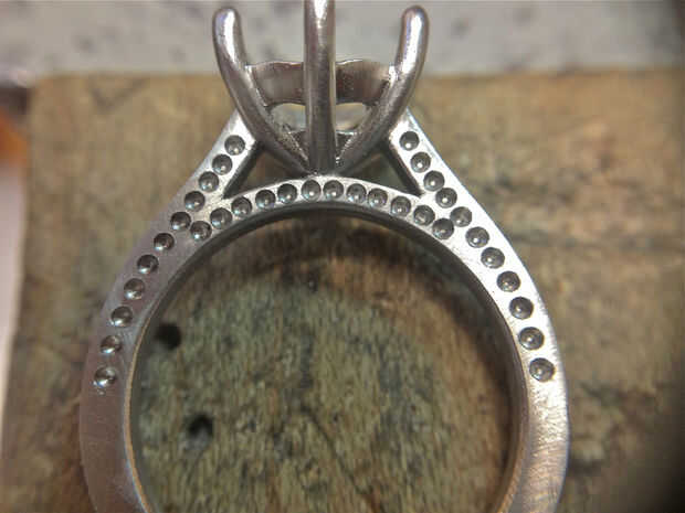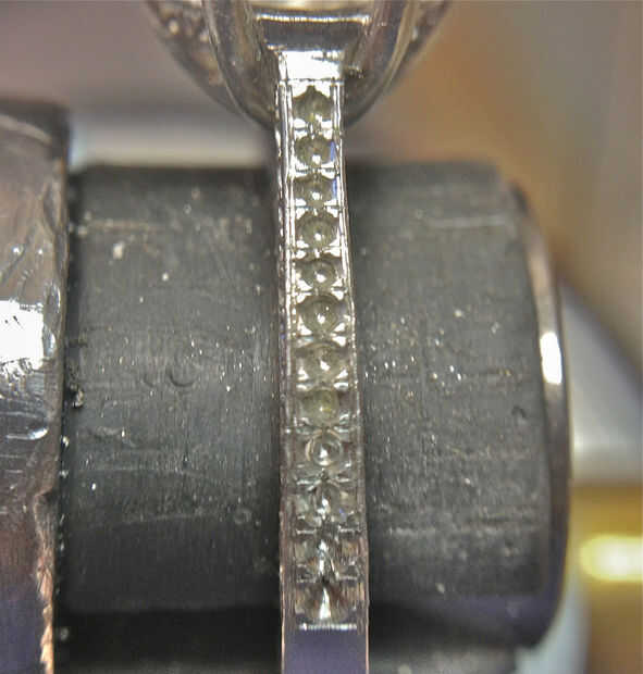 Este proceso entonces se repite por toda la superficie del anillo donde se establecerá la piedras.