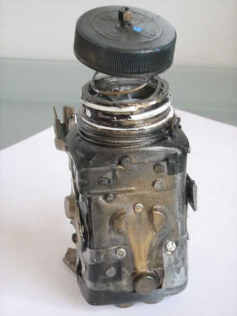 Los brazos son una especie de barras finas, lata, reunidos a través de un resorte que va entre ambos lados del frasco... que se pueden mover y pueden estar "oculto" dentro del cuerpo del matraz.