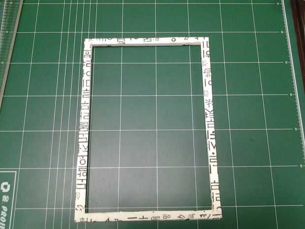 Mientras miraba en el fotograma, pensé "cómo bla hace que con las cubiertas de agradables!" Bueno, por suerte tenía estas bien tiras de papel izquierda sobre (no mencionar a un trozo de buen tamaño de la hoja original también). Así que había pegado al marco. Mejora sustancial que diría.